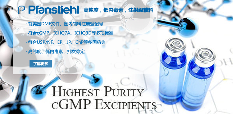 “熱烈祝賀Pfanstiehl的注射級甘氨酸Glycine(G-140)喜獲CDE登記號F20250000403, 這是Pfanstiehl產品獲得的第18個CDE登記號!”甘氨酸在醫藥輔料制劑中應用廣泛,, 可作為緩沖劑,增溶劑,穩定劑等,具有諸多優勢。Pfanstiehl秉承一貫高品質理念,為滿足全球生物制藥行業對于高品質甘氨酸的需求,隆重推出的注射級甘氨酸Glycine (G-140), 具有超高純度,超低內毒素,超低金屬殘留的特點,單獨檢測29種金屬離子,并且新增DNA,RNA,DNA酶,RNA酶和脂肪酶,亞硝酸鹽等多項質量指標的檢測,符合多國藥典規定(USP, EP, BP, JPE, ChP),可用于生物治療性藥物和疫苗的生產。產品信息:· 產品名稱:Glycine, High Purity, Low Endotoxin, Low Metals, USP, EP, BP, JPE, ChP (G-140)· 中文名稱:甘氨酸· 分子式:C2H5NO2· 分子量:75.07 g / mol· CAS號:56-40-6· 產品貨號:G-140產品特點: · 超高純度,超低內毒素,超低微生物含量,超低金屬雜質殘留· 質量指標新增DNA,RNA,DNA酶,RNA酶,脂肪酶和亞硝酸鹽檢測· 符合多國藥典:USP, EP, BP, JPE, ChP· 符合ICH Q3D標準· 符合GMP標準· 已獲DMF和CDE登記號 產品應用:· 緩沖劑· 穩定劑· 增溶劑如果您對Pfanstiehl注射級別Glycine G-140感興趣,歡迎聯系Pfanstiehl 中國區代理商北京西美杰科技有限公司獲得如下詳細的產品概況說明文件和測試樣品。Pfanstiehl Inc.最新產品系列如下,歡迎聯系北京西美杰科技有限公司獲取100g裝免費樣品。北京西美杰科技有限公司為Pfanstiehl中國代理,為客戶提供完善的技術支持與售后服務。歡迎撥打西美杰客服電話400-050-4006或者登陸網站www_xmjsci_com.rangzu.cn了解更多信息。 更多>